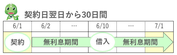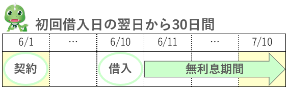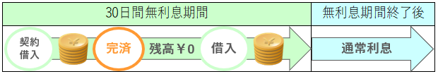 - 完済後、再度無利息で借入するには翌月からの借入が条件