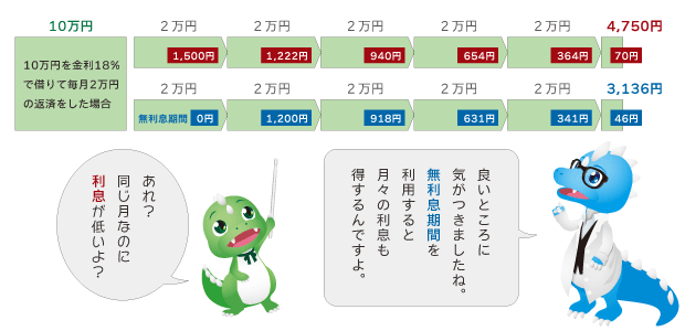 無利息期間というのはその名の通り、利息の無い期間ということであり、その期間内は借り入れた元金だけを返済すれば良いことになっています。