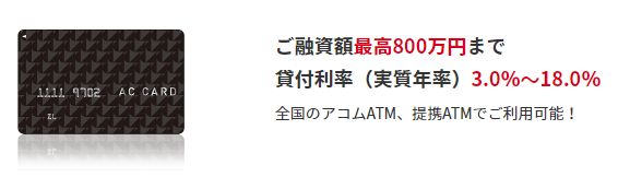 まず、実質年率3.0%~18.0%、限度額最高800万円は消費者金融でもトップの商品内容であり、いち早く限度額800万円まで広げたのは消費者金融の中ではアコムです。