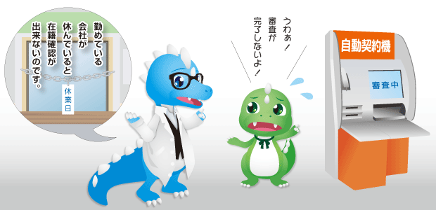 業者のホームページには「自動契約機は土日曜・祝日でも申込が可能」と謳ってあるため、誤解している人が少なくありませんが、この文言の意味はあくまでも申込ができるということに過ぎず、融資ができるかどうかはその後の審査次第になります。