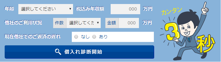 簡易的な診断であるため、3秒借入診断の結果と実際の審査の結果は異なる場合もあります。しかし、他社借入をしている方や初めてカードローンの申し込みをする方は一度診断してからの申し込みがおすすめです。