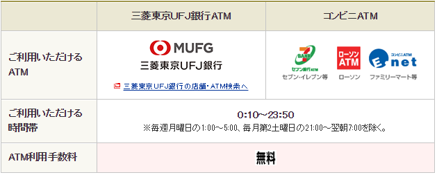 ATMの場合は借入時と同じく三菱UFJ銀行ATM、セブン銀行ATM、ローソンATM、E-netから返済ができ、ATM手数料は無料です。口座を持っていない人は必然的にこの返済方法となります。